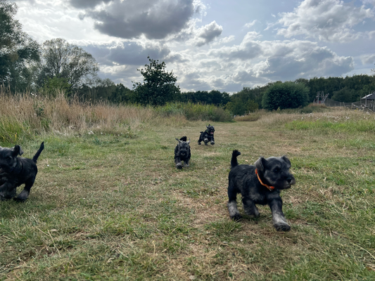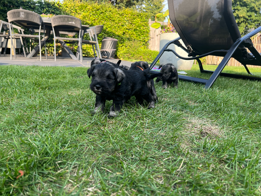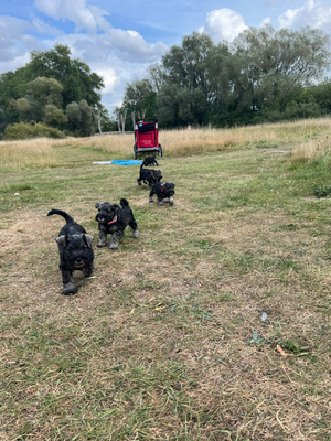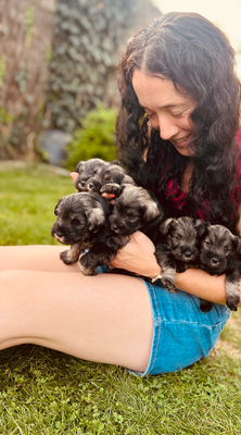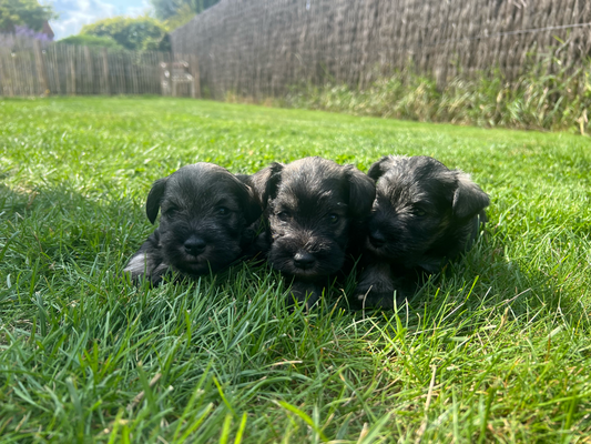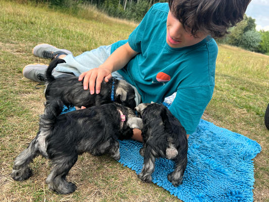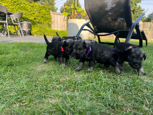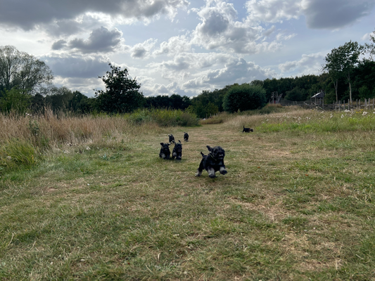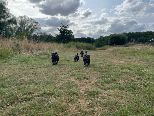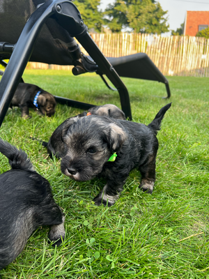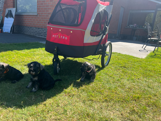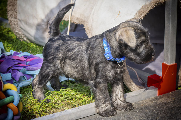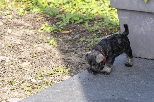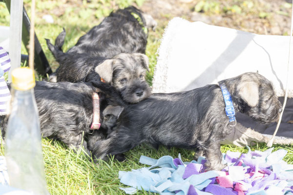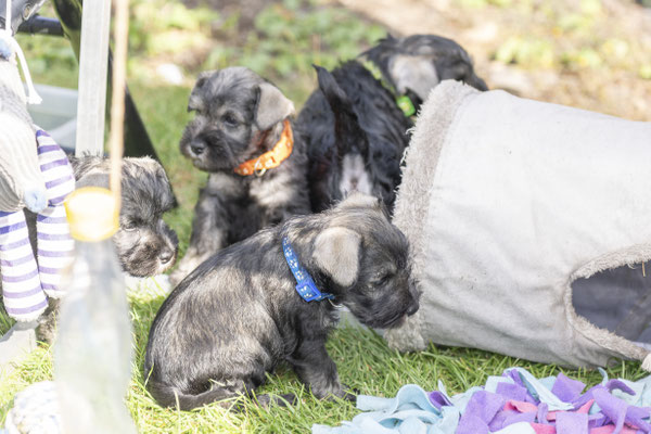 20 augustus: De pups werden nogmaals ontwormd. Vrijdag controle bij de dierenarts en het Europees paspoortjes, chip, dna, vaccinatie en de levershunt test. En dit weekend plannen we dan de eerste buggy uitstapjes. Speelplein, wandeling... We hebben fantastische zomer voor de rakkers, ze genieten ten volle van de tuin!