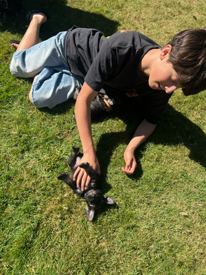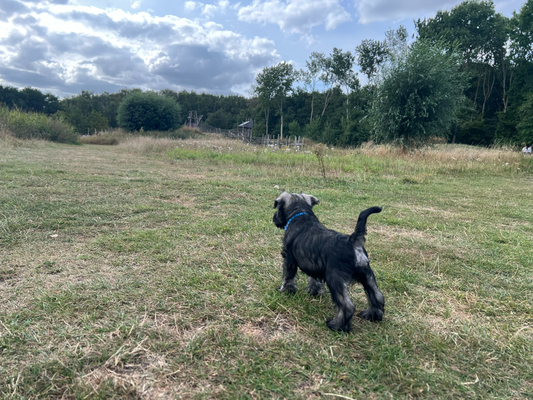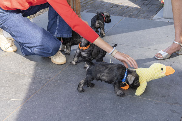 We trainen ze nu op het buiten leren spelen, ontdekken, proper worden. Vonden ze de eerste 2 dg heel spannend. Maar zijn er nu al goed weg mee. De karakters zullen zich zo beginnen vormen.